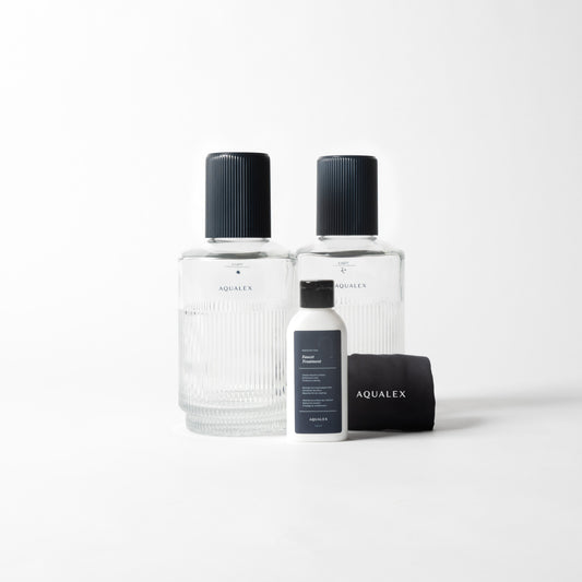 Le nom parle de lui-même : nos Essentials sont des ajouts indispensables à votre système d'eau AQUALEX. Des bouteilles en verre élégantes et des porte-bouteilles aux produits d'entretien garantissant des performances optimales – chaque détail est soigneusement sélectionné pour rendre votre expérience de l'eau simple, élégante et sans souci.