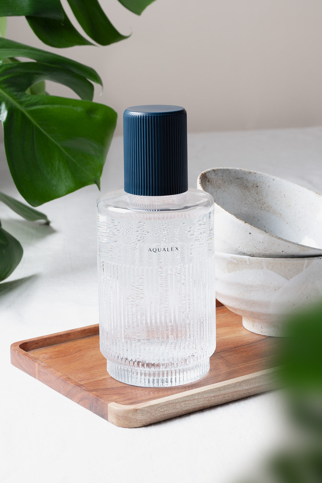 Een waterfles met de allure van een cocktailjurk. Strak, sober en gracieus. Een tijdloos designobject dat je met nog meer finesse laat genieten van een heerlijk glas AQUALEX water.